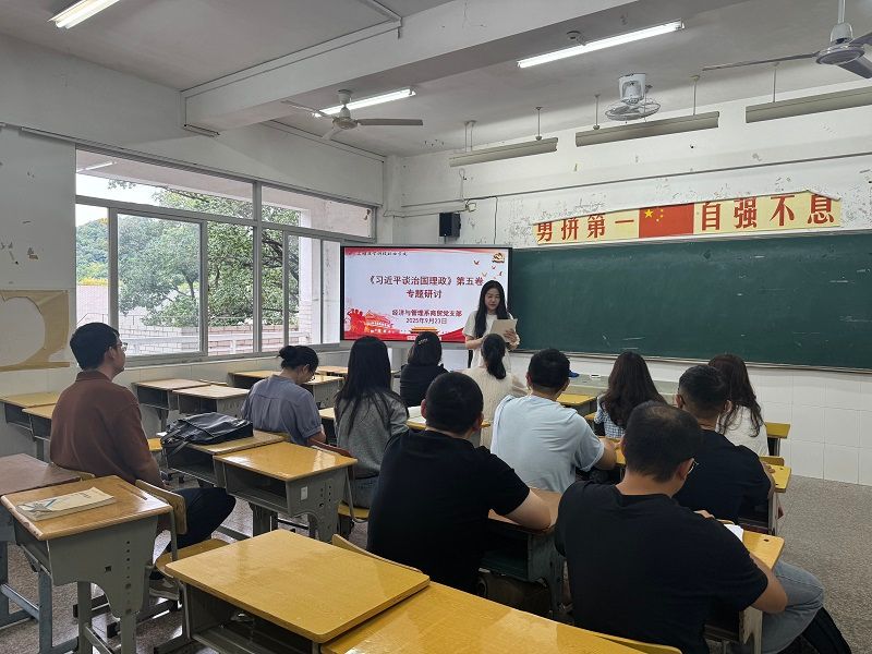 党员黄金华进行领学,他系统地解读了第五卷中关于全面深化改革、高水平对外开放、高质量发展等核心内容,强调理论联系实际,将学习成果转化为推动学院经济与管理系相关专业建设和人才培养的动力。
