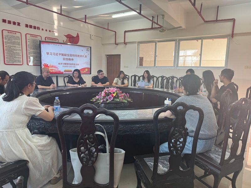 10月13日下午,经济与管理系商贸党支部在杨时楼301教室召开专题学习会,深入学习习近平总书记勉励全国特岗教师代表的回信精神。党支部全体党员参加了此次学习,蔡兆烜同志领学,于娟、夏芳同志作重点发言。
