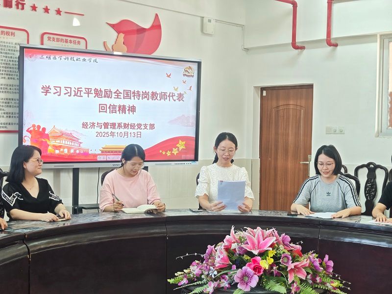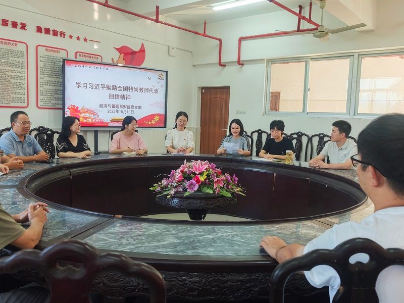 10月13日下午,经管系财经党支部在朱子楼504召开专题学习会,深入学习习近平总书记勉励全国特岗教师代表的回信精神。会议由吴雪茹主持,全体党员参加了会议。
