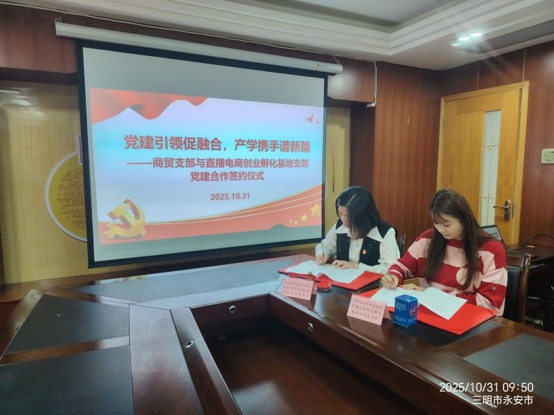 党建共建聚合力,产教融合谱新篇。10月31日,经济与管理系商贸党支部与永安直播电商孵化基地党支部在永安开展党建共建活动。院党委委员、副院长林克明、永安市燕北街道党工委组织委员罗联招及相关支委、党员代表、企业代表出席活动。