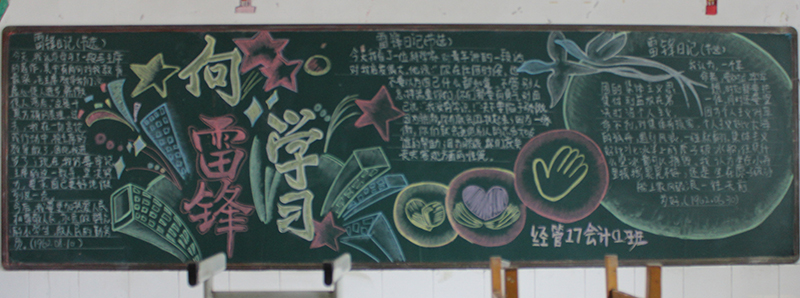 三月是“学雷锋”活动月,为进一步弘扬与传承雷锋精神,营造助人为乐的校园氛围,经济管理学院举行了“学习雷锋精神”黑板报评选活动。
