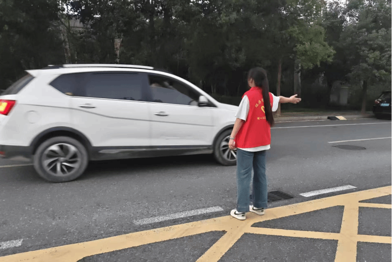 在网约车接送高峰时段,志愿者们积极协助维持秩序,倡导“规范接送、安全第一”,引导同学们在指定区域上下车,确保校门口通行安全有序。志愿者们还在校园主要路口、斑马线等重点区域开展文明引导,帮助新生安全过马路,友善劝阻不文明交通行为,并向师生发放交通安全宣传手册,让安全知识“入脑、入心、入行”。