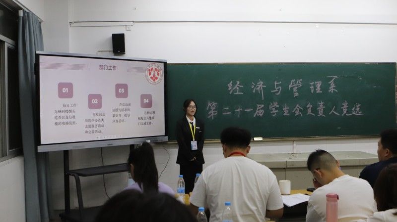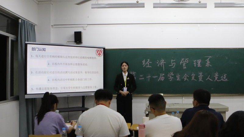 竞选现场氛围庄重且热烈。参与竞选的同学们神采奕奕,依次登台发表演讲。他们紧扣个人简介、对部门工作的理解以及自身竞选优势等方面展开详尽阐述,充分表达出服务同学、锻炼自我的强烈意愿与坚定决心。候选人言辞流畅、逻辑缜密,充分展现了经济与管理系学子良好的综合素质与蓬勃风貌,彰显出勇于担当的坚毅决心。