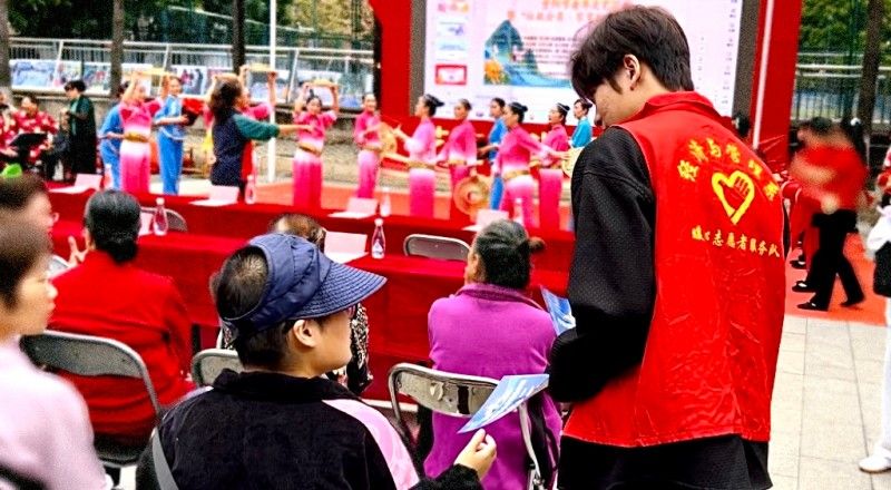 在活动过程中,志愿者们始终陪伴在老人身边,为听力欠佳的老人轻声细语地讲解节目内容,协助老人拍摄记录下精彩瞬间,及时为有需要的老人递上纸巾和热水。志愿者们还主动与老人互动,随着旋律轻轻拍手,现场氛围既温馨又热烈。汇演结束后,志愿者们有序地引导老人离场,将提前备好的慰问品一一送到老人手中,并逐一叮嘱他们注意出行安全。老人们被同学们的热情与关怀深深感动,脸上洋溢着幸福的笑容。