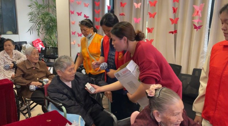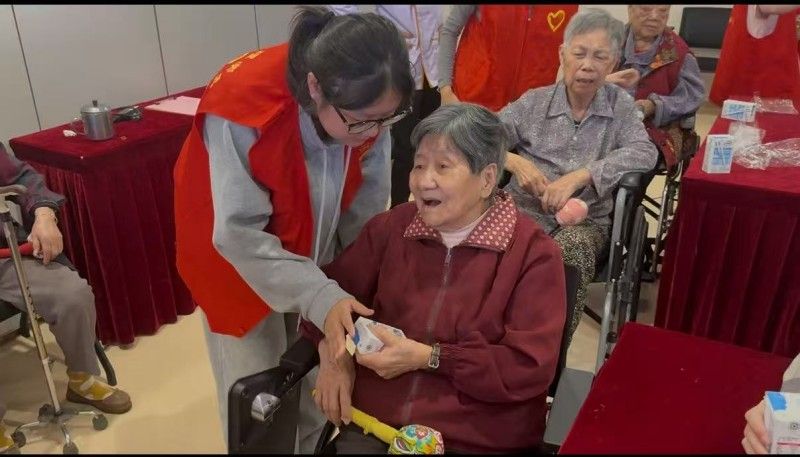 活动的最后,志愿者们分组陪伴老人聊天、下象棋、按摩肩膀,在轻松愉快的交流中倾听老人们的生活故事,传递细致入微的关怀。志愿者们还为老人们送上牛奶等慰问品,并与他们合影留念,让这份温情定格为节日里最温暖的画面。