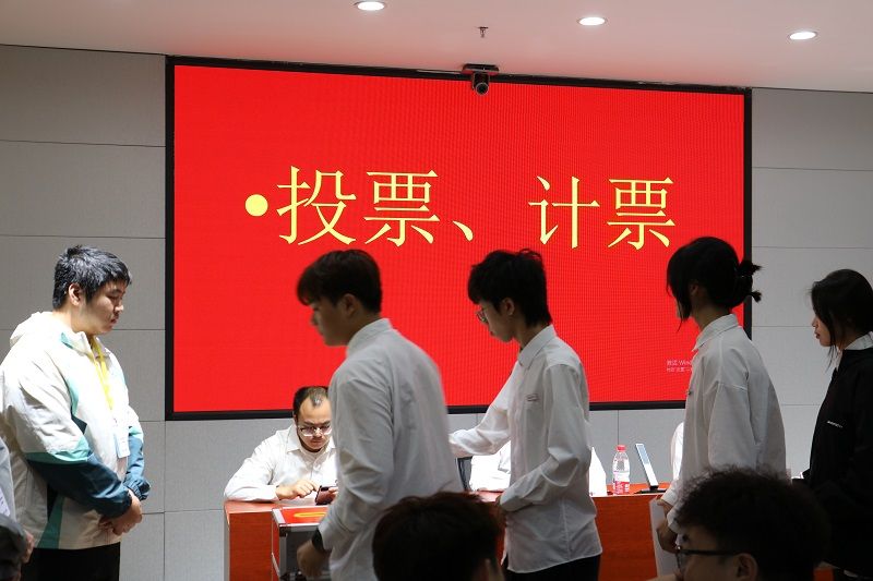 接着,大会严格按照选举流程,以无记名投票方式差额选举产生了第七届学生会主席团成员及学生委员会委员。