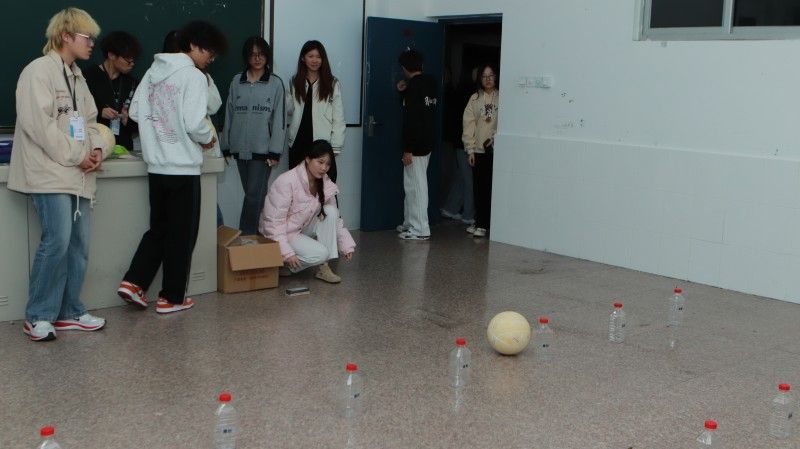 在“击倒负能量瓶”活动中,同学们全力击倒那些标注着负面情绪的塑料瓶,通过畅快淋漓的动作宣泄压力。