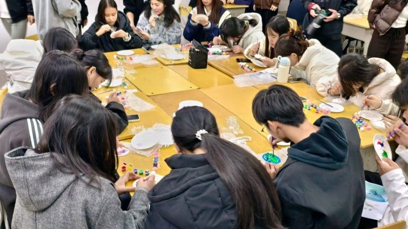 在“石膏彩盘绘”活动区域内,同学们全神贯注地为石膏彩盘上色,借助画笔尽情抒发情感,于静谧的创作过程中整理思绪,感受宁静色彩所带来的情绪疗愈效果。